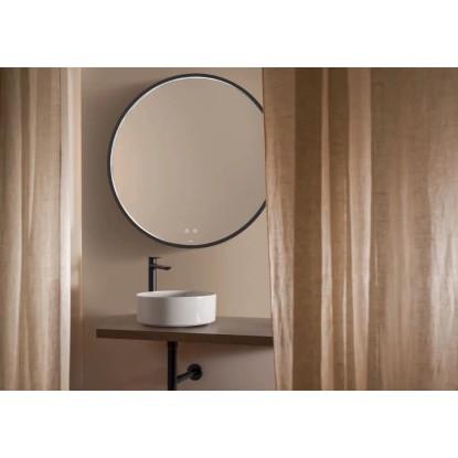 Roca Zrcadlo Luna s LED osvětlením, černý rám, pr. 60 cm