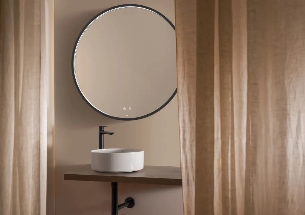 Luna je elegantní kolekce, která dodá rafinovaný charakter každé koupelně. Zrcadla jsou k dispozici v kulaté, obdélníkové a oválné verzi, díky čemuž se dokonale hodí do každého interiéru. Zaoblené hrany jim dodávají subtilní zakončení a tenký kovový rám ve vybrané matné černé barvě přidává moderní eleganci. Zrcadla jsou vybavena lineárním LED osvětlením, které vydává teplé, nepřímé světlo za zrcadlovým panelem a vytváří jemný efekt podsvícení stěny. Navíc podsvícené logo Roca a možnost sladění s ostatními prvky osvětlení činí kolekci výjimečnou.