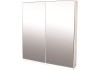 Koupelnové zrcadlo bez osvětlení skříňky. Skříňka je vyrobena z bílé laminátové desky s tloušťkou 16 mm. Dvířka jsou upevněna pomocí standardních závěsů. Zrcadlo je nalepeno na přední stranu. Skříňka s policemi vyrobená z bílé laminátové desky se dvěma nastavitelnými úrovněmi police.