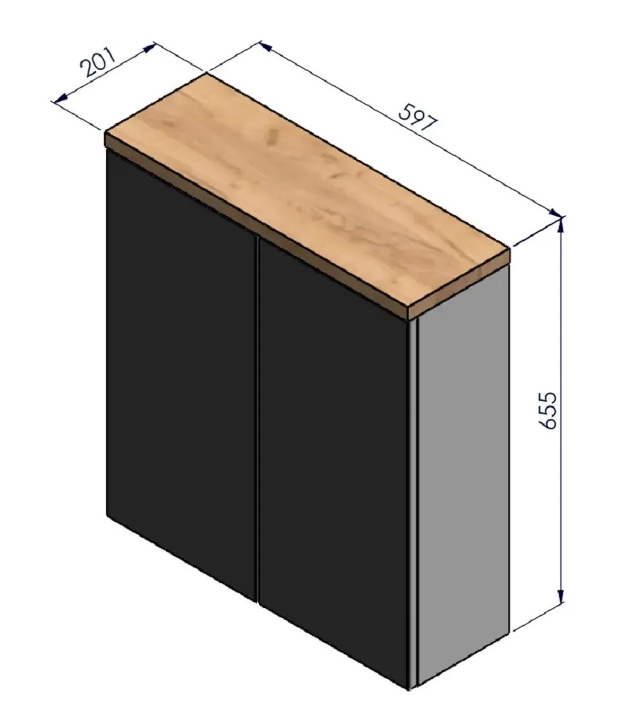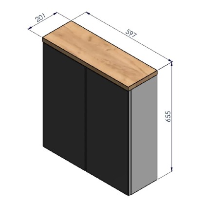Rozměry skříňky (Š x V x H): 597 x 655 x 201 mm.