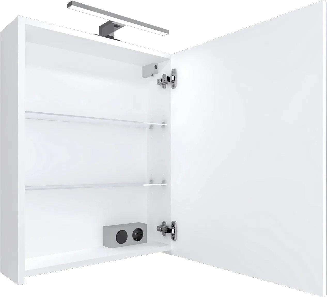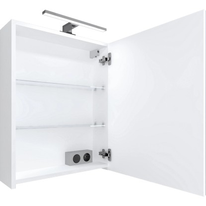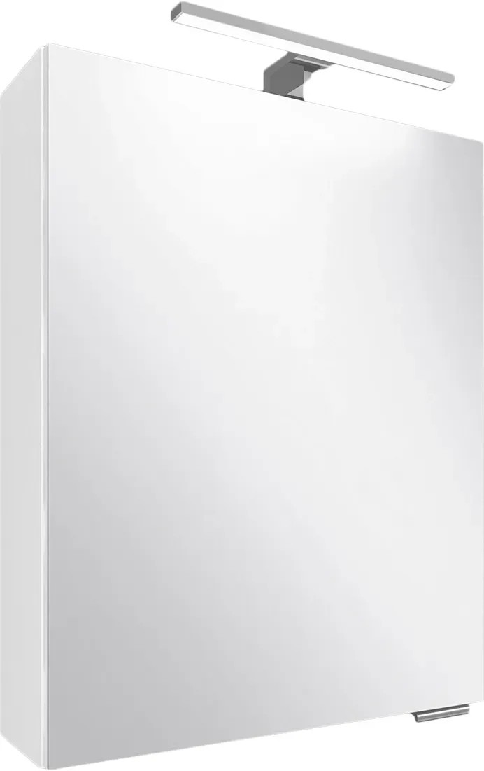Zrcadlová skříňka LUCAS ZS50 s dvířky s tichým dovíráním SoftClose a možností změny orientace otevírání. K otevírání slouží chromovaná madla. Skříňka je doplněna o LED osvětlení. Uvnitř skříňky jsou umístěny dvě skleněné police. Součástí je elektrobox s vypínačem a el. zásuvkou umístěný taktéž uvnitř zrcadlové skříňky. Korpus skříňky je vyroben z lamina s povrchovou úpravou bílý lak, vysoký lesk, dvířka jsou z bílého lamina na kterém je nalepena zrcadlovina. K zavěšení skříňky na stěnu slouží rektifikační závěsy.