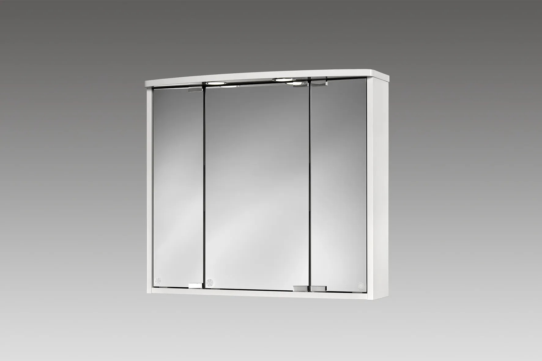 Zrcadlová skříňka Lumo od Jokey zaujme svým jednoduchým designem a bude fascinujícím doplňkem každé koupelny: tři dvířka z křišťálového skla mají 3-D zrcadlový efekt. Nastavitelné skleněné poličky zajišťují flexibilní prostor pro kosmetiku a koupelnové doplňky. Dvě LED světla zajišťují optimální osvětlení a integrovaná elektrická skříňka se zásuvkou a vypínačem také napomáhají k ideální funkčnosti. Vyrobeno v Německu.